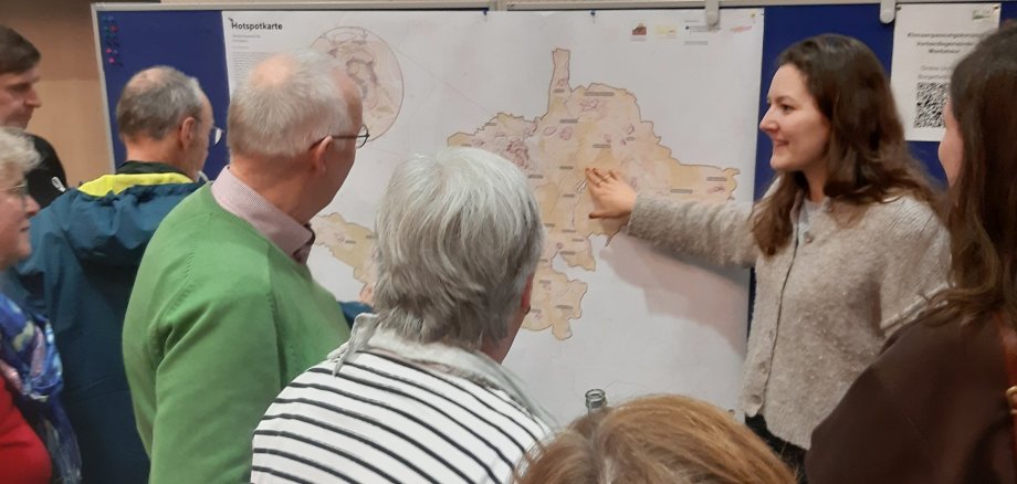 Neben den Analyseergebnissen wurden bestehende Aktivitäten zur Klimaanpassung sowie mögliche weitere Lösungsansätze aufgezeigt. Anschließend konnten sich die Teilnehmenden im Plenum und an Pinnwänden zu Herausforderungen und Erfahrungen austauschen sowie Maßnahmenvorschläge einbringen.